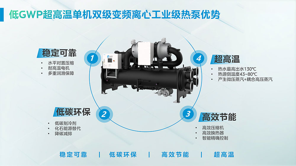 > 低GWP超高温单机双级变频离心工业级热泵机组